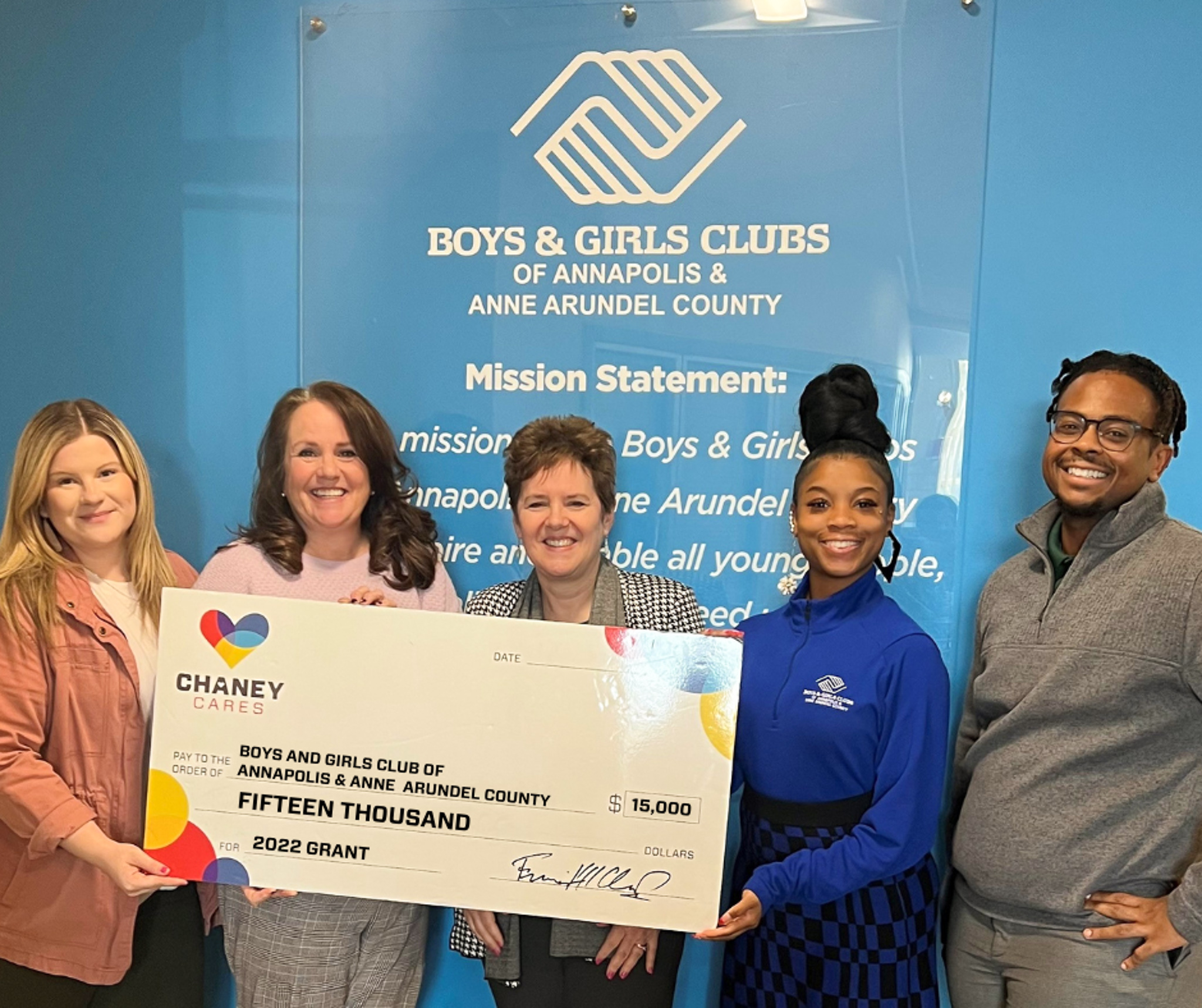 Chaney Cares recently awarded a $15,000 grant to The Boys & Girls Clubs of Annapolis & Anne Arundel County. Additionally, thanks to Chaney employees who participated in the charitable matching program in 2022, we surprised the Boys and Girls Club with an additional $6,500 to support their Career Launch program.