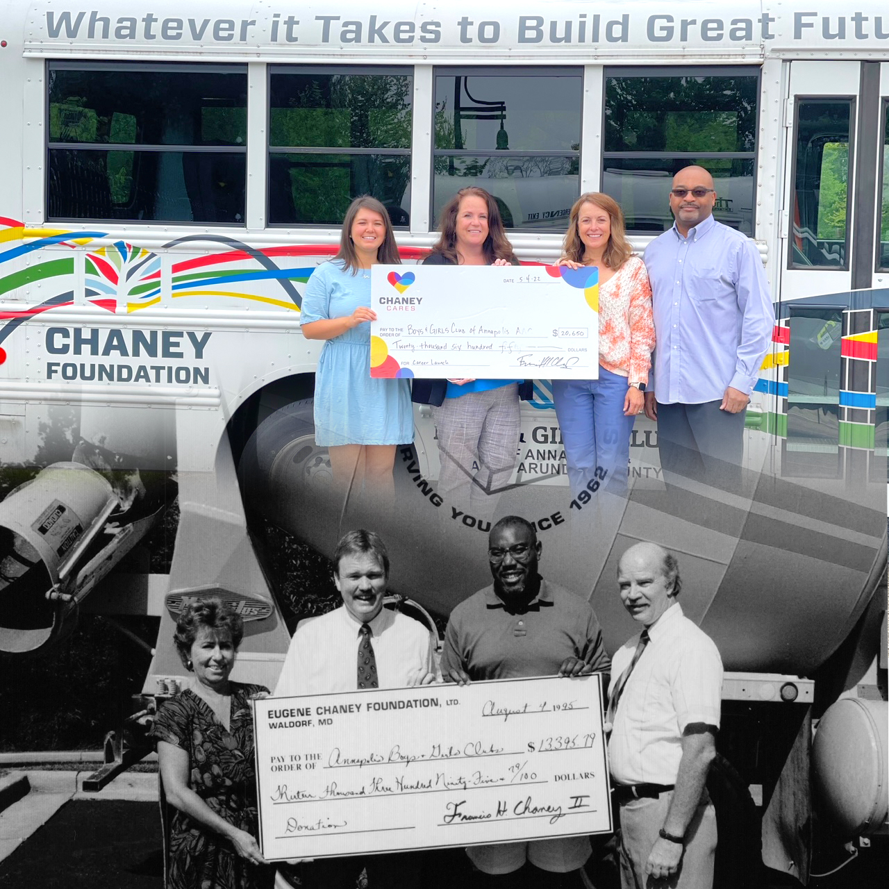 The top image features our 2021 Chaney Cares donation to The Boys & Girls Clubs of Annapolis & Anne Arundel County, while the bottom image shows Frank Chaney leading the charge & contributing to the same organization back in 1995!
